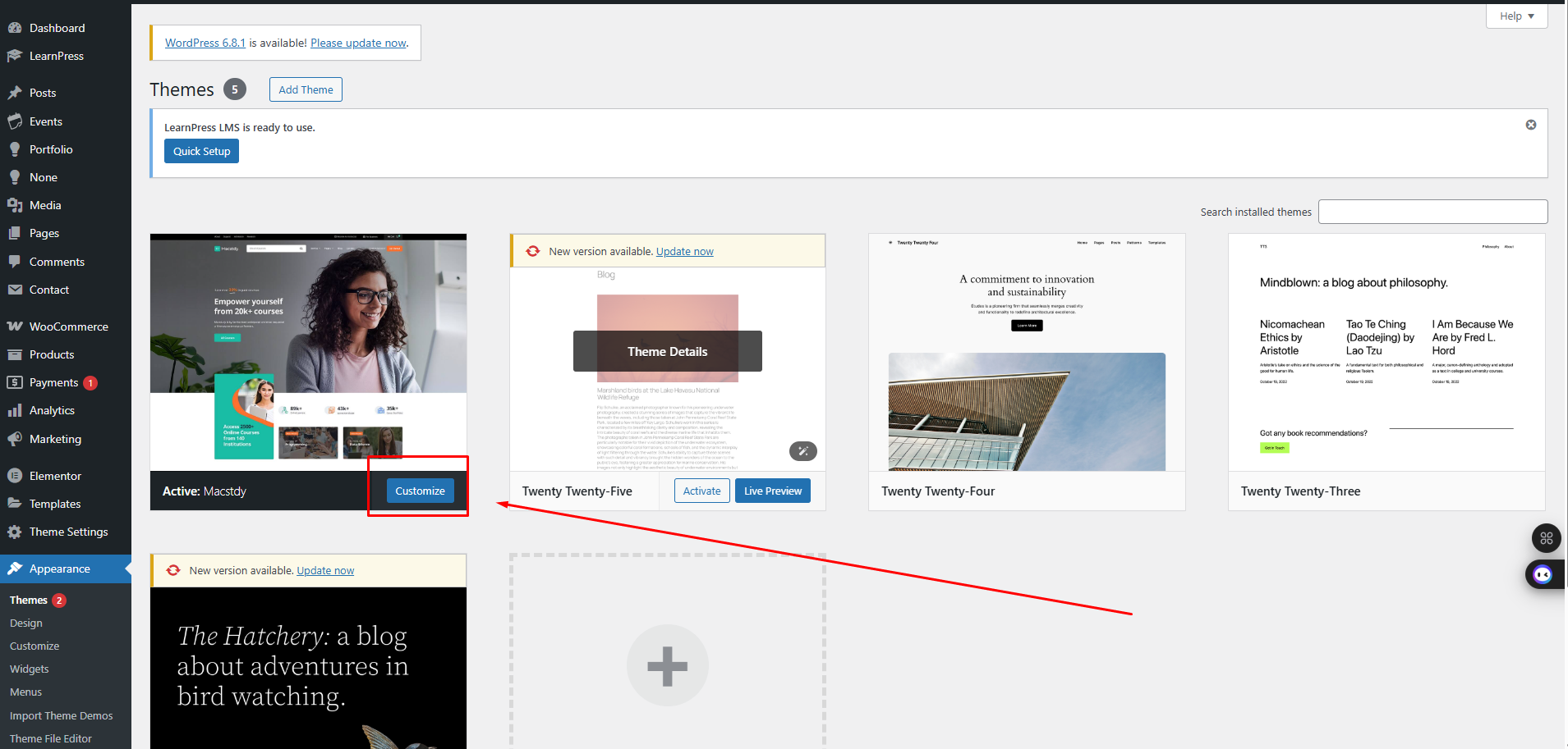 Once uploaded, activate the theme by heading to the “Themes” menu in the WordPress Dashboard. Locate the macstdy Theme and hit “Activate”.