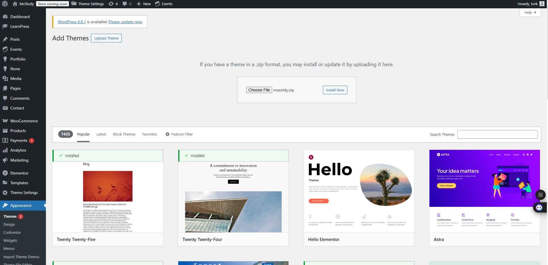 Note: When uploading your theme with the installer, please ensure you are uploading the theme .zip file, not the entire package you downloaded. In this case, you will be uploading macstdy.zip
