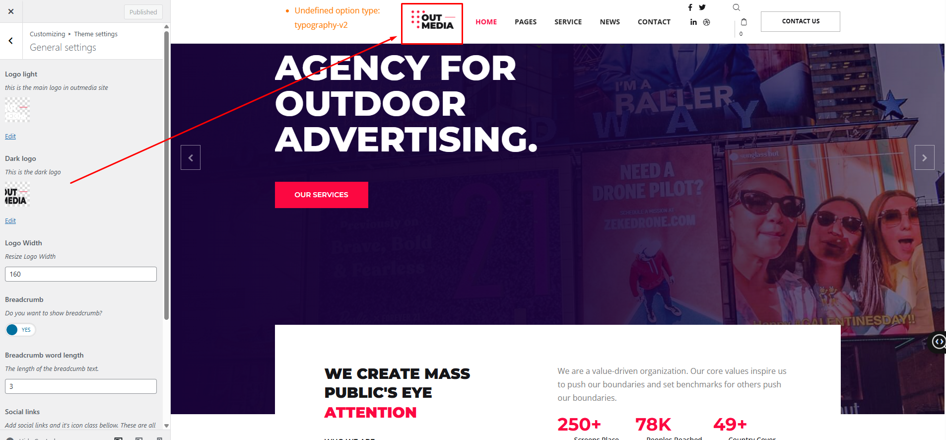 There’re different logo locations in Outmedia. All of them can be configured in