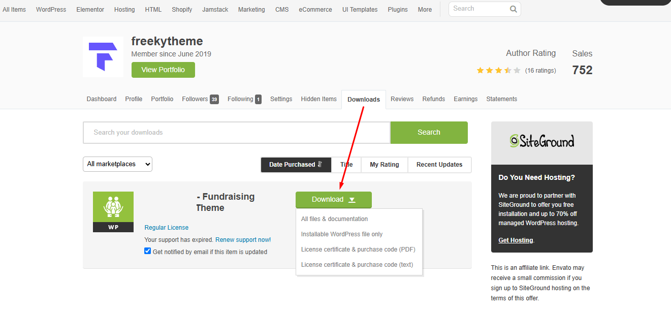 When you purchase our theme from Themeforest, you need to download the Scantrux files from your Themeforest account. Navigate to your downloads tab on Themeforest and find Bitrader. Click the download button to see the two options. The Main Files contain everything, the Installable WordPress Theme is just the installable WordPress theme file. Below is a full list of everything that is included when you download the main files, along with a brief description of each item.