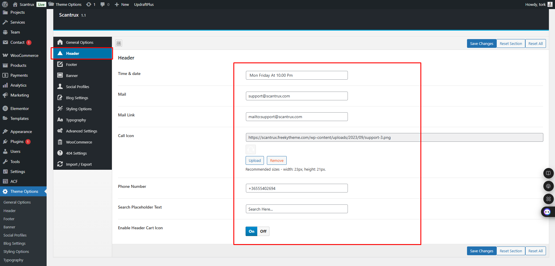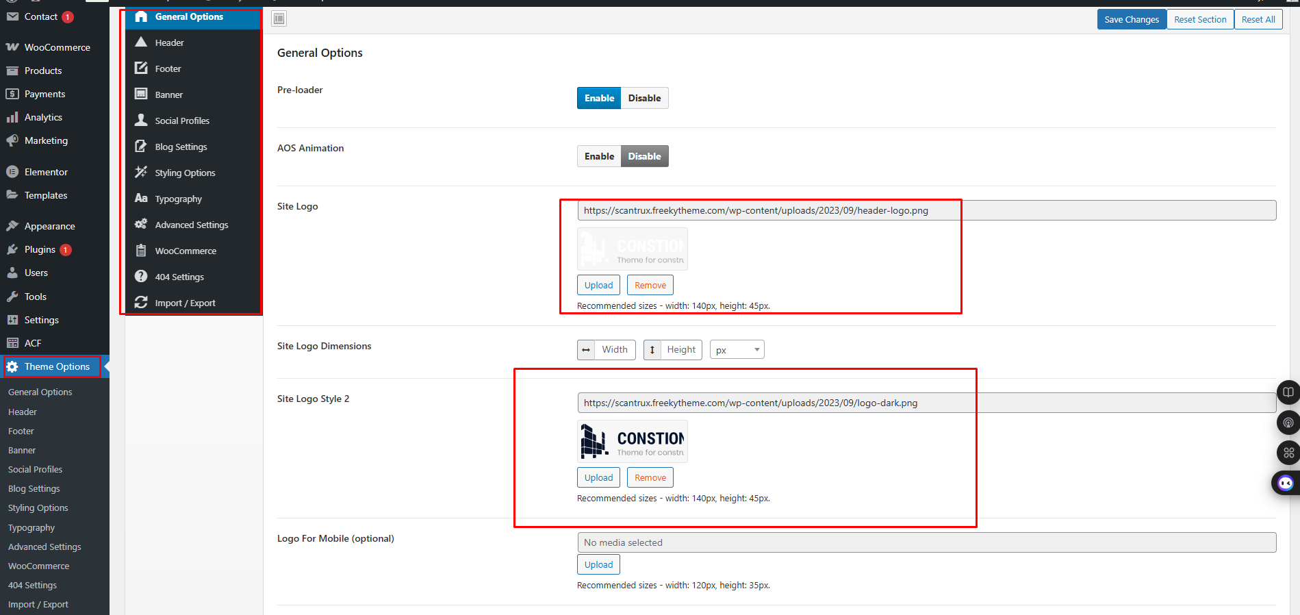 Theme Options → Scantrux Theme Options →