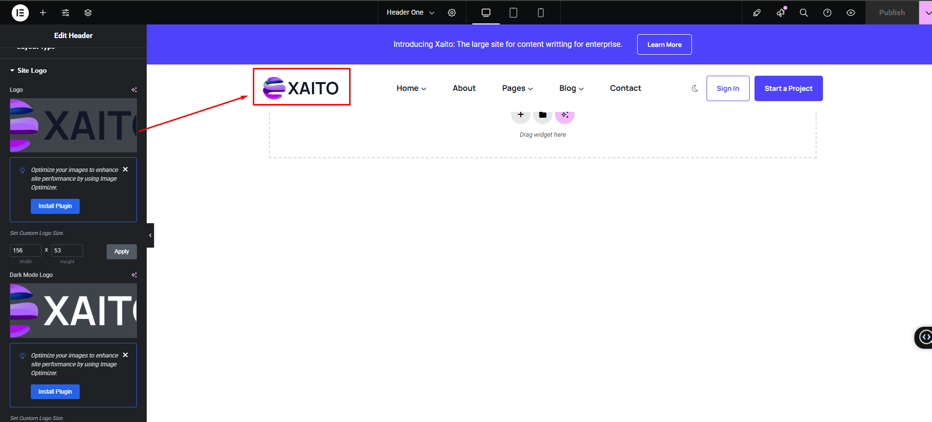 Headers → Headers one → Edit with Elementor