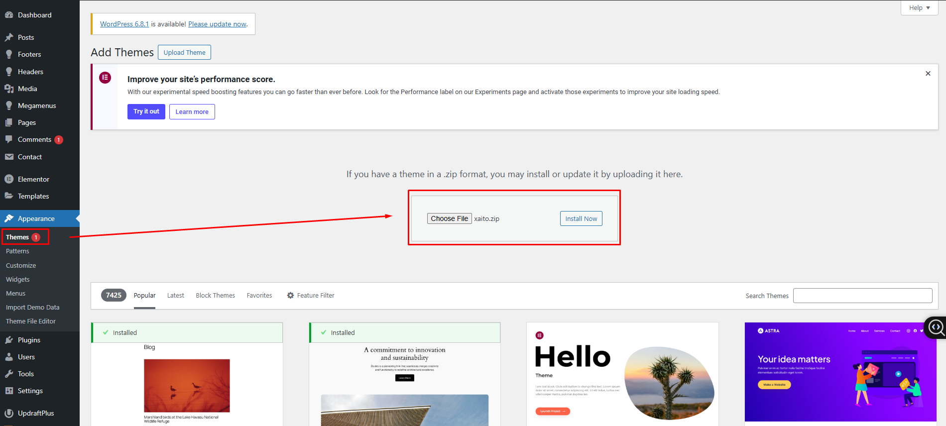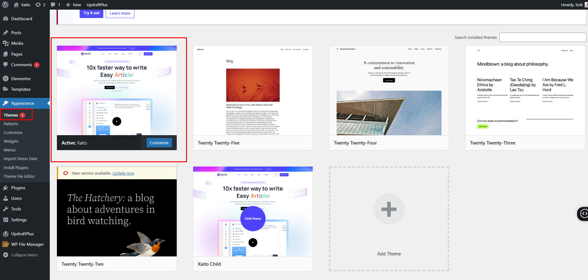 Once uploaded, activate the theme by heading to the “Themes” menu in the WordPress Dashboard. Locate the Xaito Theme and hit “Activate”.